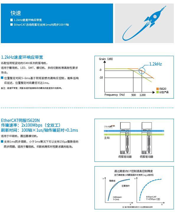 IS620系列伺服驱动器产品是汇川技术研制的高性能中小功率的交流伺服驱动器。该系列产品功率范围为100W~7.5kW,支持Modbus通讯协议,采用RS-232\RS-485通讯接口,配合上位机可实现多台伺服驱动器联网运行。提供了刚性表设置,惯量辨识及振动抑制功能,使伺服驱动器简单易用。配合包括小惯量,中惯量的ISMH系列20位增量式编码器的高响应伺服电机,运行安静平稳。适用于贴片机,印刷电路板打孔机,搬运机械,食品加工机械,传送机械等自动化设备,实现快速精确的位置控制,速度控制,转矩控制。