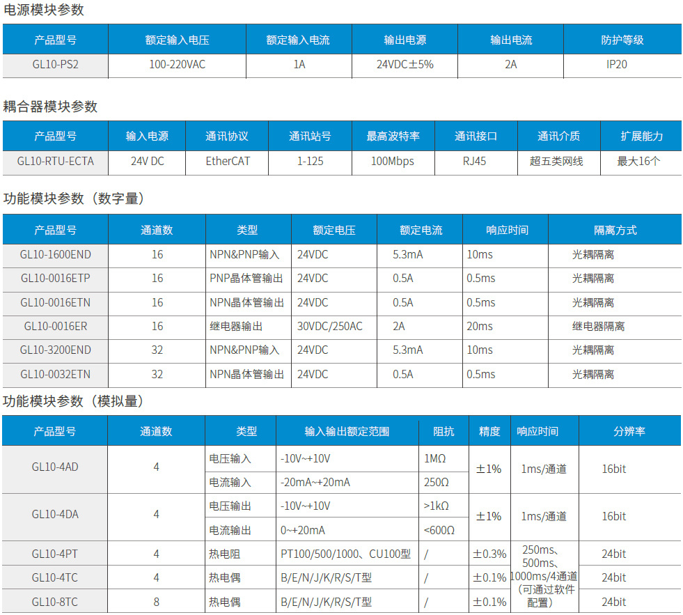 ●支持EtherCAT总线扩展。由耦合器充当协议转换功能,实现扩展总线与EtherCAT总线的互联,自由搭配功能模块组成模块化I/O系统