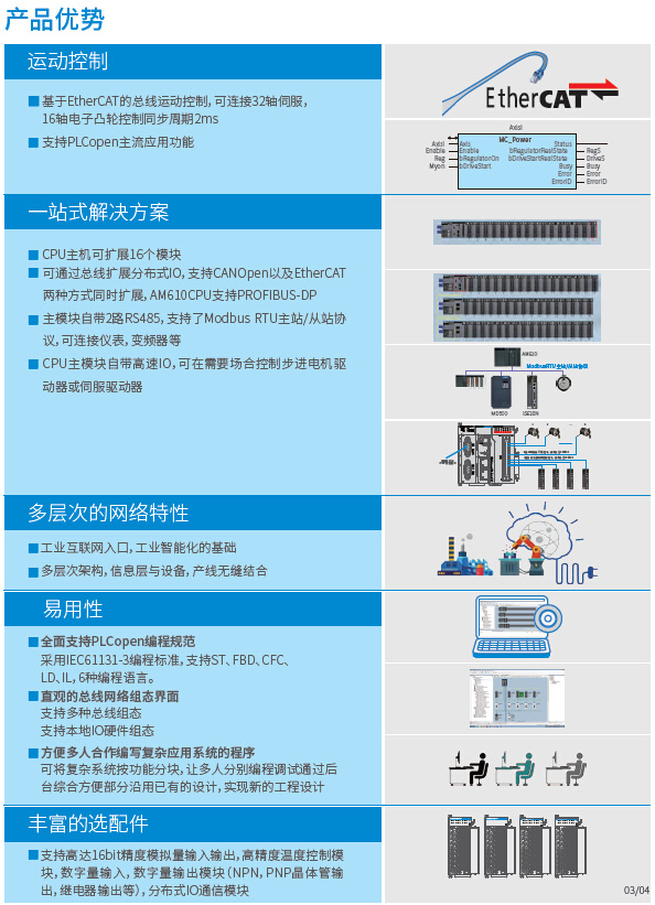 AM600系列中型PLC属于汇川技术自主开发的首款中型PLC。凭借十余载的工控设备沉淀,打造出坚固可靠的工业大脑。使其在大规模控制的工厂自动化、产线自动化,过程控制自动化设备都十分适用。