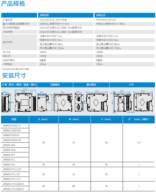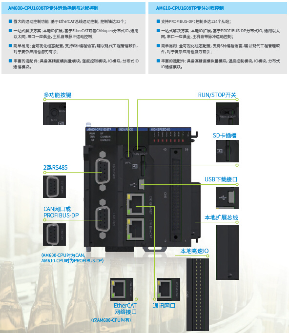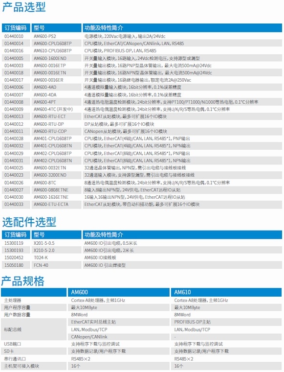AM600系列包括2款CPU,其中一款为AM600-CPU1608TP以及AM610-CPU1608TP。