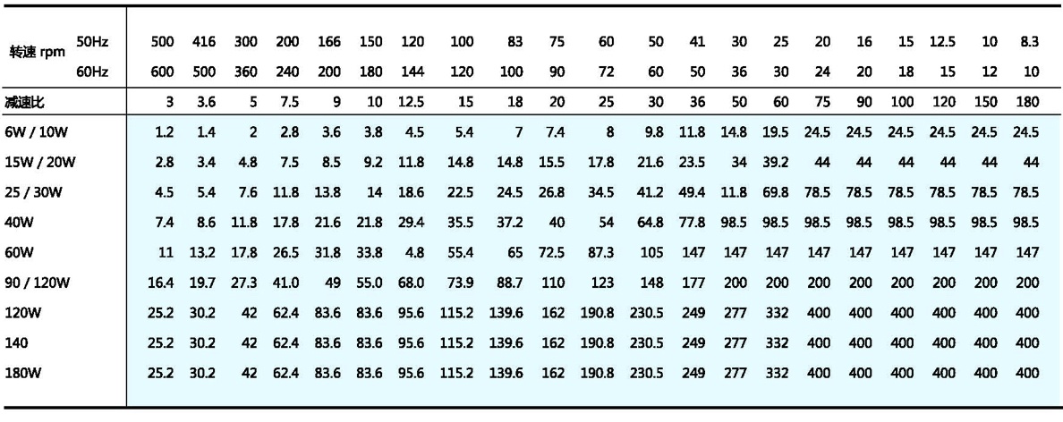Gearbox maximum bearing torque table (kg.com)